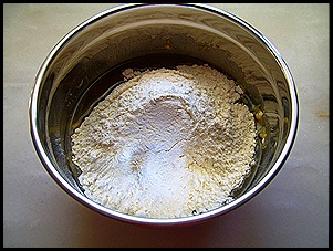 Βάζουμε όλα μαζί τα υλικά σε ένα μπολ και τα ζυμώνουμε.
